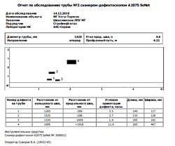 - выявление в основном металле трубы стресс-коррозионных и коррозионных дефектов, выявление дефектов проката листов с указанием их количества, условных размеров и места расположения (координат).